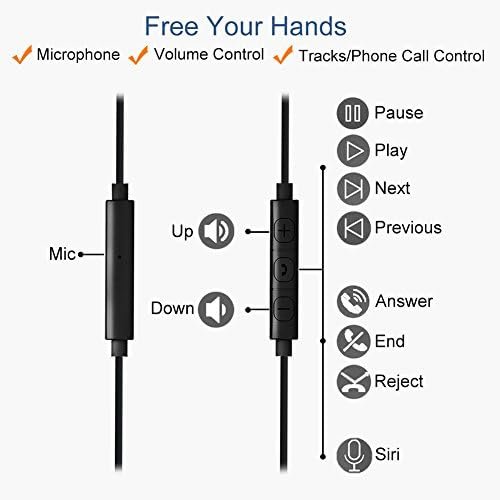 EASY HANDS-FREE TRACKS, VOLUME CONTROL & CLEAR SOUND ON PHONE CALL – The in-line mic sits just below the jaw, picks up your voice while isolating background noise, which ensures clear phone call conversations. With the remote buttons, you can easily answer/end calls, pause/play/skip tracks, activeate voice (siri) command, control volume during running.