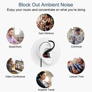 SPORT EARBUDS THAT STAY IN EARS ON THE MOVE – Wrap aound ear design keeps earbuds from slipping out while working out. The flexible earhook wire is soft and thin. You can hardly feel them even with glasses over ear. The ear hook also helps keep ear buds around ears from missing when not in use. There’s a clip to keep cable from moving around.