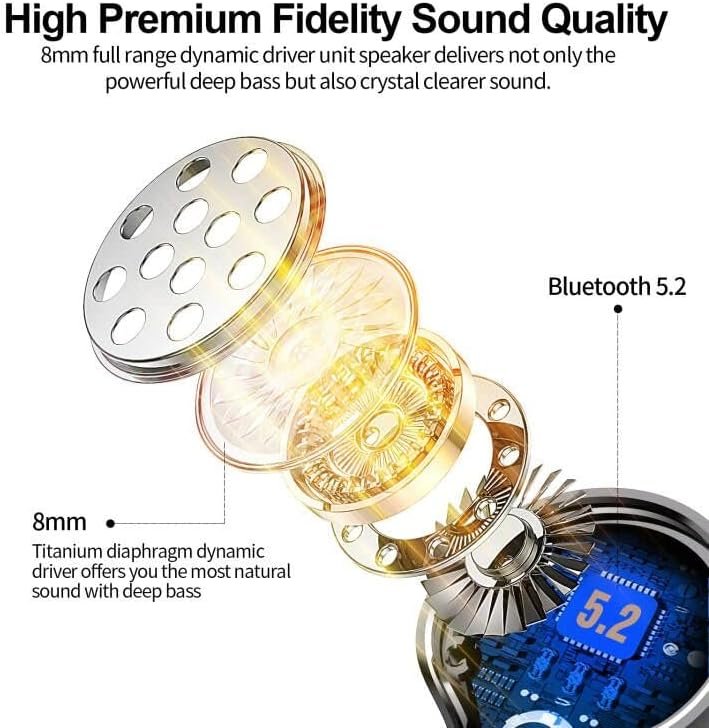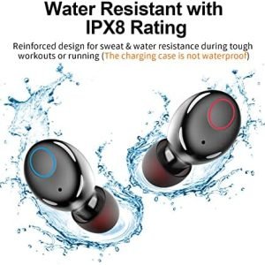 【IPX8 Waterproof & Sweatproof】With an IPX8 rating, this wireless earbuds are resistant to sweat, water and rain. S8 wireless earbuds can endure and work flawlessly under different weather conditions. There’s nothing holding you back from running through the storm or sweating out your new personal best in the gym.(Please note: The charging case is not waterproof)