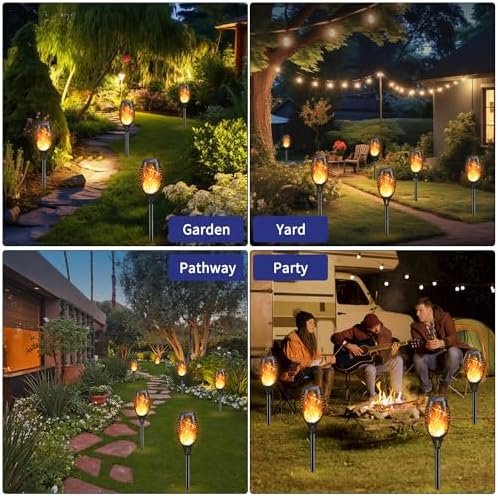 Broad Decorations Scenarios: Solar torch lights are prefect outdoor decorations for patio, yard, garden, porch, pool, pathway, walkway and party, camping, barbecue, wedding, halloween, christmas festival, which could provide a perfect campfire ambience.