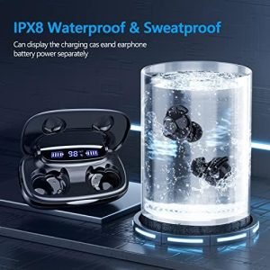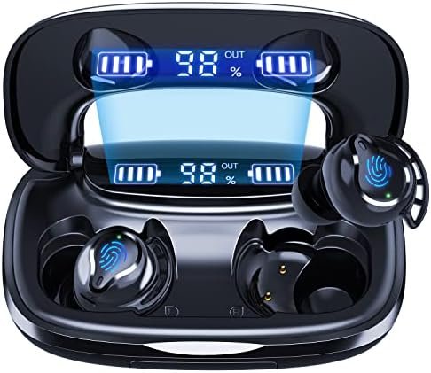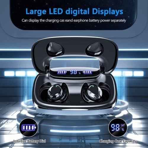 【180H Long Playtime & LED Display】:A single charge gives you a full 5 hours of listening, while the charging case for Bluetooth earbuds extends that to 180 hours.The LED display on wireless headphone accurately display the remaining power of earbuds and charging case. Besides, charging case can be used as a power bank to charge your phone in an emergency.