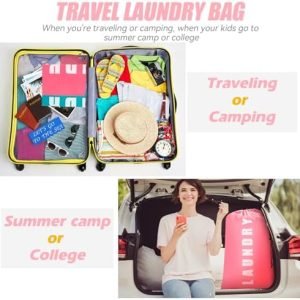 👍【210D Nylon Material】: Tear resistant nylon material, with waterproof function, folding, when we go out to travel, business trips, camping, or children to participate in summer camp, we can fold the laundry bag into the suitcase, easy to carry, storage