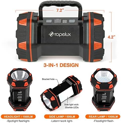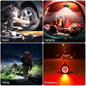 💡【2+4+2 LIGHTS MODES】- This camping lantern rechargeable has front, Back lamp heads and side lights and a total of 8 lighting modes. Main light has 2 light modes(high,low), Suitable for far and near lighting. Taillight has 4 modes (high,low,red,red strobe), suitable as an emergency light. Side floodlight are 2 modes(high,low), which can be used as a camping light.