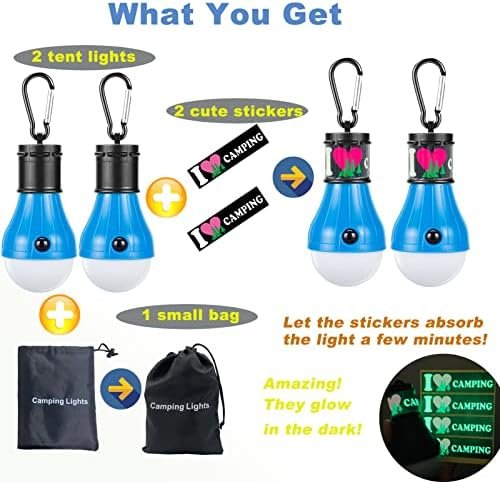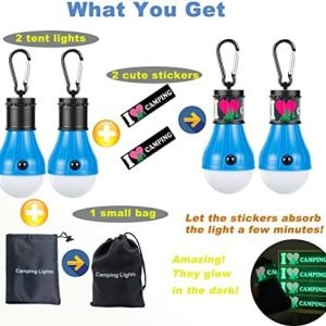 ✔HANDY Camping essentials led camping lanterns : Camp lantern sized(4.6 X 2.1 inch) cute bulb shape, lightweight camp lighting easy to carry for kids, anti falling carabiner design free your hands, hang it to tent, shed, rope, branches, or backpack when hiking, cycling, riding, mountaineering, hunting, fishing. Great tent accessories camping accessories for kids. Perfect camping gear emergency lights fits different needs.