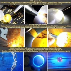 Rechargeable Multi Function Flashlights – 3 Color Light : Can carry out jewelry appraisal, antique collection, porcelain research,Amber beeswax detection.