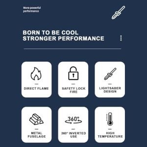 Featuring an impressive lightsaber-inspired appearance, the lightsaber lighter not only catches the eye but also delivers a powerful flame, making it perfect for various applications including kitchen use, outdoor grilling, camping, and more.