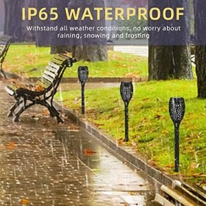 STYLISH FLICKERING FLAME LIGHTS – This kind of solar flame torch lamp is a safe alternative to the real “flames”. It casts a safe, soft and mood-enhancing glow.