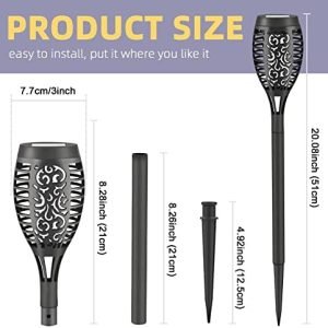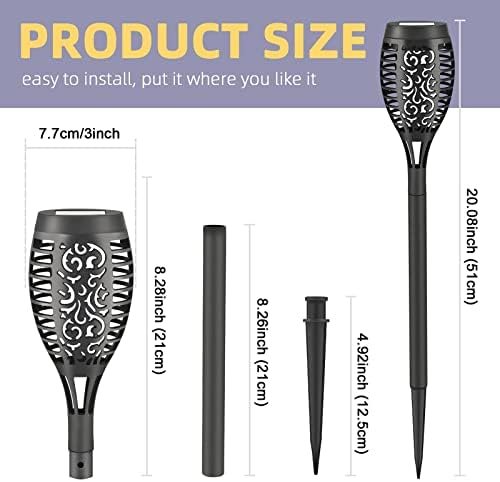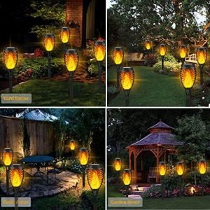 ☀Solar Torch Lights with Flickering Flame:This kind of solar torch lights are safe alternative to the real “flames”, Glowing flames at night create a festive atmosphere and are the perfect choice for outdoor garden, party decor.