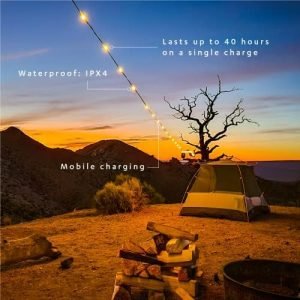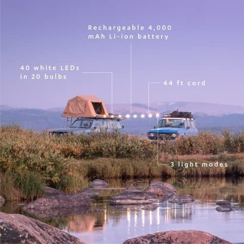 Powerful and expansive, Luci Solar String Lights + Power Hub provides up to 40 hours of energy-efficient light on a single charge. Featuring a 44 ft nylon-braided cord, 20 shatterproof bulbs, and 40 warm white LEDs, and a detachable 4,000 mAh rechargeable battery with mobile charging capabilities, these solar string lights provide illumination and ambiance to any outdoor space. With the completely detachable unit, you can remove and recharge the unit via the solar panel or built-in USB port, all while leaving your string setup intact. These weather-resistant string lights are the ultimate in overhead lighting. So whether it’s a backyard, an RV, or a cozy campsite, Luci Solar String Lights 44′ turns any outdoor space into a welcoming one.