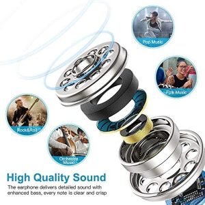 【Durable and Safe】 – In-ear earbuds made of excellent anaerobic copper core and TEL material package, enhance the durability and stability of the earbuds wired, making the headphones wired with mic less likely to tangle. More secure and comfortable to use.