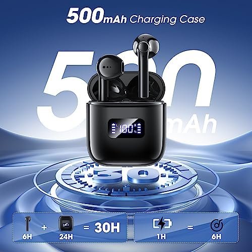 Long Battery Life: Wireless headphones provide 5 hours of talk time and 6 hours of music playback time. Plus, the included 500mAh charging case can provide an additional 4 times the battery life for the earbuds. Whether it’s long trips, outdoor activities, or all-day use, these earbuds can meet your needs and let you enjoy music without interruption.