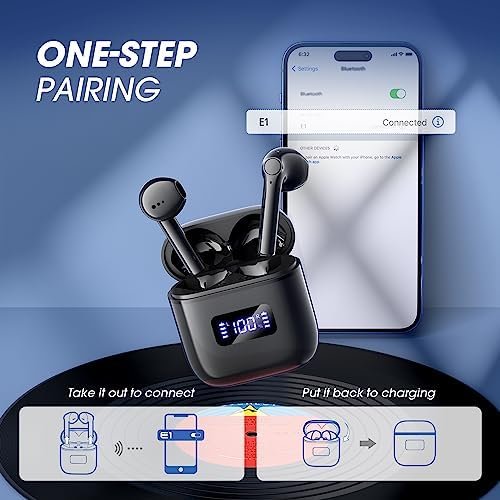 One-Step Pairing Bluetooth Headphones: With the latest Bluetooth 5.3 technology, earbuds can achieve a more stable and faster connection. It also ensures wide compatibility with various devices, whether connecting to a smartphone, tablet, or other devices, you’ll experience high-speed audio transmission. After pairing for the first time, just take the two wireless earphones out of the charging case and they will reconnect automatically.