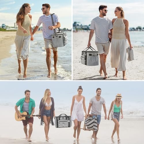 Collapsible and Portable: This portable cooler can be widely used when you go camping//Beach/hiking/Grocery Shopping/Kayaking/Road Trips. You can fold the leakproof ice chest effortlessly when not in use, which is space-saving.