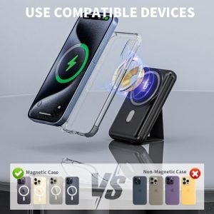 【Charge for iPhone 15/14/13/12 Twice】This magnetic portable charger is for iPhone 15, iPhone 15 Plus, iPhone 15 Pro, iPhone 15 Pro Max, iPhone 14, iPhone 14 Plus, iPhone 14 Pro, iPhone 14 Pro Max, iPhone 13, iPhone 13 mini, iPhone 13 Pro, iPhone 13 Pro Max, iPhone 12, iPhone 12 mini, iPhone 12 Pro and iPhone 12 Pro Max. (Note: Need to be aligned with the magnetic suction, without cases or with mag-safe cases)