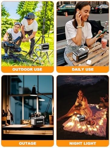 EASY TO CARRY: The number of ports, battery capacity, and charging convenience provided by the generator are 2-3 times more than most mobile power sources. However, its volume is equivalent to that of two ordinary mobile power sources combined, making it easy to fit in a backpack or handbag. The camping power generator weighs only 3.3 pounds and comes with a handheld handle that is very convenient to carry.
