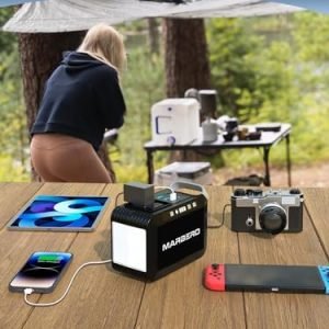 Ideal Gift for Family and Friends: This portable power bank with AC outlet is also suitable for camping, fishing, traveling and powering festival led lights. You will receive 1* MARBERO 88Wh portable power bank, 1*User Manual, 1*Cigarette lighter, 1*AC Charging Adapter.