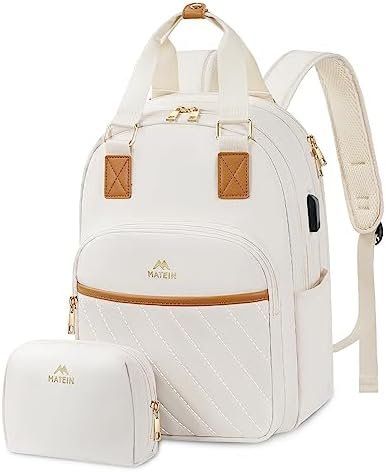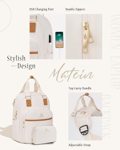 🎀FASHIONABLE DESIGN🎀: The MATEIN cute backpack is the perfect combination of fashion and function. Its stylish metal double-way zipper and beige exterior add a stylish touch to any outfit. As a travel backpack for women, it features an external USB charging port to keep your phone charged on the go (need to prepare a mobile power supply and a charging cable).This purse backpack is an ideal choice for short-distance outings.
