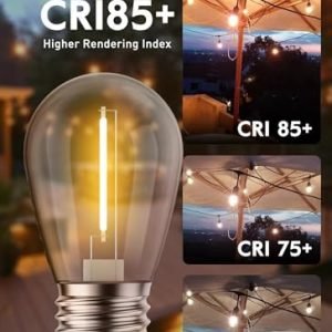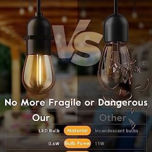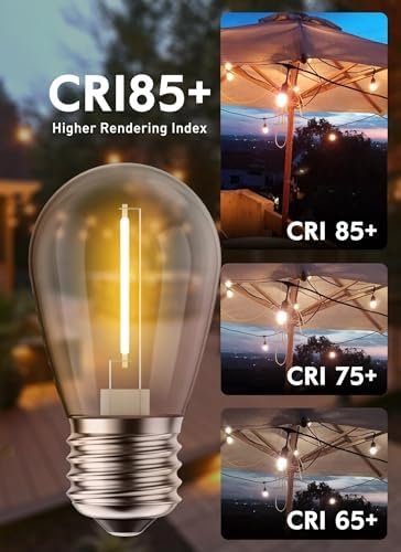 💡DURABLE&WIDE APPLICATION: The operation life of light bulbs is over 20000 Hrs, no worry to replace light bulbs frequently. Extreme weather conditions do not affect the normal use of light bulbs, S14 string light bulbs are suitable for both outdoor string lights and indoor lighting, including bistro lights and patio illumination, outside garden, camp, party.