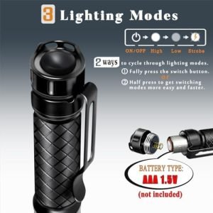 【3 Modes】No more cycling through endless modes! Only featuring 3 useful lighting modes (High / Low / Strobe), which effectively reduces the trouble of switching 5 modes.Fully press the switch button to turn on and off, and half press to cycle through lighting modes.