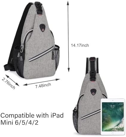 Dimension: 14.17 x 7.48 x 2.76 inches (L x W x H). Main compartment is compatible with iPad Mini 6th 2021, compatible with iPad Mini 5th 2019, compatible with iPad Mini 4/2, compatible with Kindle Paperwhite and other 6-9 inch tablet and e-reader. Other multifunctional pockets can store phones, wallet or outdoor/travel sundries. 2 side mesh pockets for water bottle or umbrella (up to largest diameter 2.5 inch). 1 hidden zippered pocket on the back is convenient for your precious items.