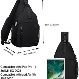 Made of soft polyester material with gliding smoothly zippers and strap clip, allows you convenient access to your stuff. This sling bag is suitable for women men, suitable for outdoor sports (hiking, cycling, biking, walking, running, camping, climbing), office and business. This item is not intended for use by children 12 and under. 1 year warranty on every sling bag.