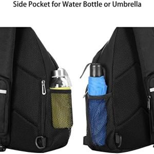 One mesh pouch on each side is for water bottle or umbrella (up to largest diameter 2.5 inch). 1 anti-theft pocket is designed on the back for your wallet, cellphone, keys and other precious items. And a small storage bag on the shoulder strap is designed to keep your phone, with dimension of 6.69 x 3.21 x 1.18 inches (L x W x H). Multifunctional storage area, accessory compartment with functional pockets to keep your items.