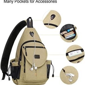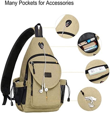 An earphone hole on the front pocket enables you to enjoy music easily. Can be used as crossbody chest shoulder bag / shoulder bag / crossbody backpack / casual daypack / casual rucksack / sling bag / chest bag / travel bag. Suitable for men / women travel, outdoor sports (hiking, cycling, biking, walking, running, camping, climbing) and other outdoor occasions. This item is not intended for use by children 12 and under. 1 year warranty on every sling bag.