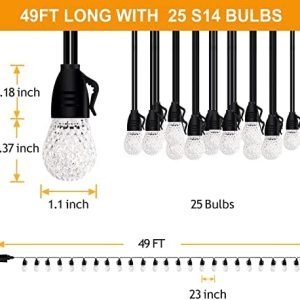 ✨WHAT YOU GET – The box includes a 49FT light bulb string light, a plug, a remote and user manual. Each bulb has a hook for quick fixing to the fence or something. Or you might prefer using zip ties, cup hook and guide wires(not included) to fix the string and decorate your garden and patio