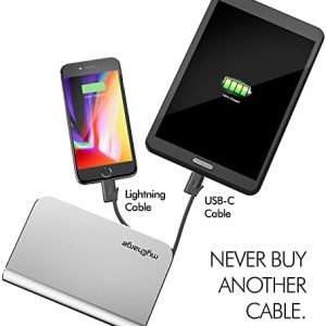 PORTABLE CHARGER WITH BUILT IN CABLES: With the myCharge HubMax portable battery charger, no extra cables are needed, as devices plug directly into the power pack for 10050 mAh Internal Battery / 3.4A shared output and up to 6X cell phone battery backup