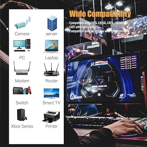 Widely Used & RJ45 Connectors:Cat 8 Ethernet Cable with two shielded RJ45 connectors at both ends,Perfect for networking switch,routers,ADSL,network adapters,hubs,modems,PS3,PS4,PS5,NAS,IP Cam,Mac,Laptop,coupler,x-box 360 gaming stations,printers,patch panels,Keystone jack,smart TV and other device with RJ45 connectors.It is suitable for small or middle enterprise LANs, especially for data center switch-to-server interconnections.