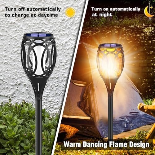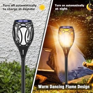 Just place the solar flame lights into your lawn, garden, a flower pot, bench, pathways. IP65 waterproof dancing flame solar torch light was built to withstand all kinds of weather all round the year.