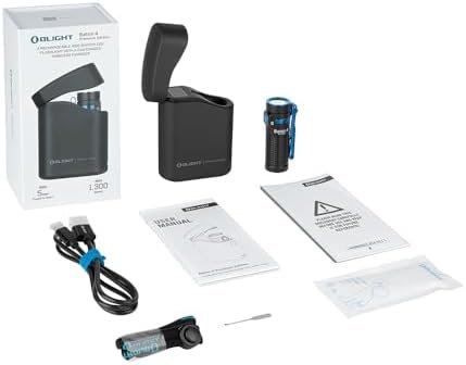Max Output 1300lm Max Throw 558ft/170m Battery Source Customized Rechargeable Battery Light Source High Performance White LED Body Material Aluminum Alloy (Baton4); PC (Charging Case) Waterproof IPX8 Length 2.48in/63mm (Baton4); 2.56in/65mm (Charging Case) Head Diameter 0.83in/21mm (Baton4) Body Diameter 0.83in/21mm (Baton4) Weight 6.84oz/194g (Including the case and the flashlight) Package Content Baton4 (Battery Included) x1; Baton4 Charging Case x1; Lanyard (with pin tool) x1; Type-C USB Charging Cable x1; Cleaning Cloth x1; User Manual x1