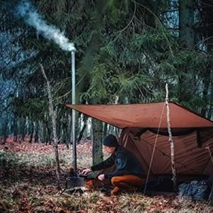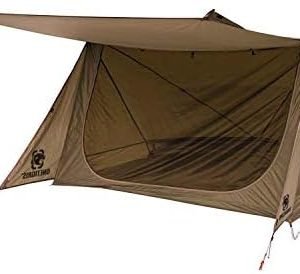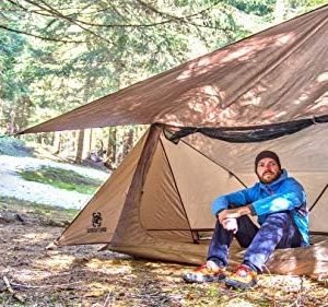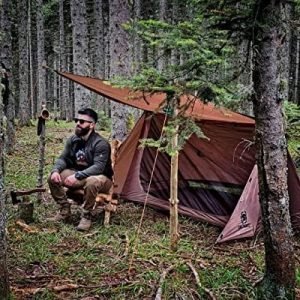 ★ 𝙑𝙚𝙧𝙨𝙖𝙩𝙞𝙡𝙚 𝘽𝙪𝙨𝙝𝙘𝙧𝙖𝙛𝙩 𝙎𝙝𝙚𝙡𝙩𝙚𝙧: You can leave the canopy up to make a porch area for you wood stove, or zip it up while heavy raining or snowing, then it becomes a normal a frame tent like a fortress; Super easy to set up with tent pegs and guy-lines provided, you can use sticks to support it, or your walking poles, or just set it up between trees with poles free; Color options in Coyote Brown & OD Green for better blending with wild nature surroundings