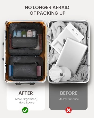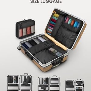 🧳 Uncompromising Durability: Our packing cubes boast a 28% superior thickness. After a comprehensive analysis of other luggage organizers, We have a new upgrade to the fabric, using high-quality 290D polyester twill with better waterproof performance. This fabric is stronger and more stretchy, guaranteeing the longevity and durability you need for daily use.