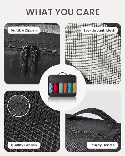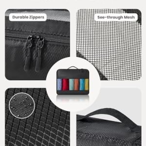 🧳 High-Quality Detail Presentation: Our packing cubes feature sturdy metal, two-way zippers that effortlessly glide, minimizing jamming and snags. These packing cubes use breathable and see-through mesh panels, your items stay fresh and easily visible. Enjoy hassle-free access and keep everything organized effortlessly.