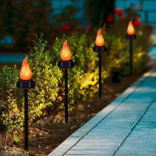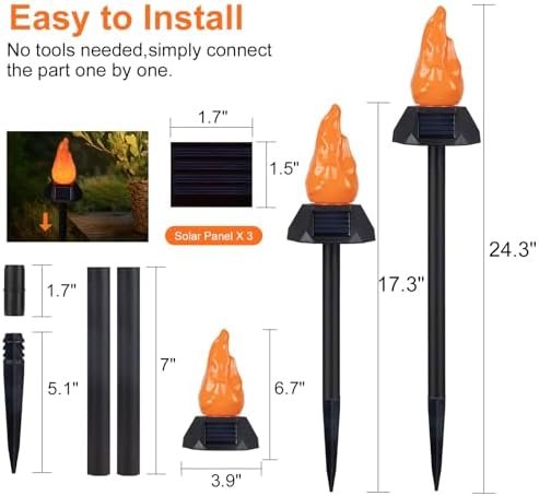【Simple Assembly】- Our solar lights are independent and super-easy to install. Use them as decorative pathway lights, or place them on outdoor tables for a smaller flame-like feature. There are endless options to brighten your evenings and enhance your outdoor space.