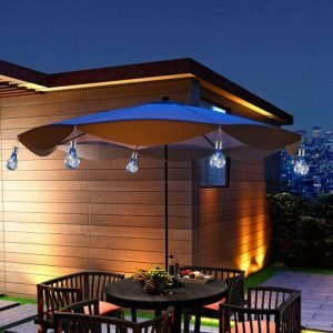 Easy Operation and use as no wiring is needed. Just unscrew the lamp cap, slide switch”ON”, Clip the clamp on umbralle or any areas where conventional electrical supply is not available, automatic design, charge by day, shine by night.