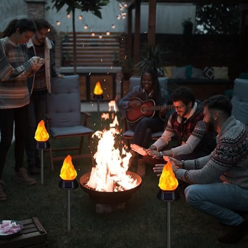 【Unique Flame Design】Solar torch lights flicker gorgeous dancing flames, a safe alternative to the real “Flames”. Combining multiple flame lamps together can create a more perfect campfire atmosphere.