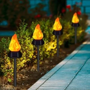pearlstar Solar Pathway Lights with Flickering Flame for Garden Decor