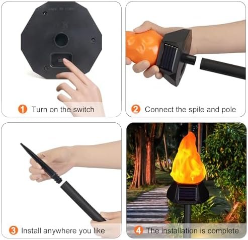 【Occasions】Solar flame light can work independently, easy to carry and place anywhere, suitable for lawn, garden, patio, yard, driveway, walkway, outdoor camping, beach party and so on. It can light up the environment as well as add to the atmosphere of the program and party.