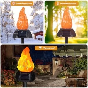 【IP44 Waterproof Design】Our solar outdoor flame light is very durable, IP44 waterproof and high temperature resistant, able to withstand all kinds of weather throughout the year. Just place the solar lights into your lawn, garden, patio, yard, pathway