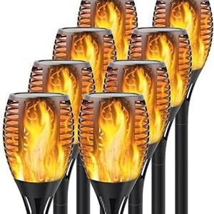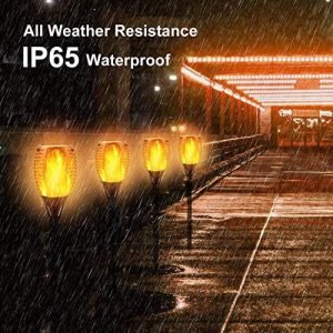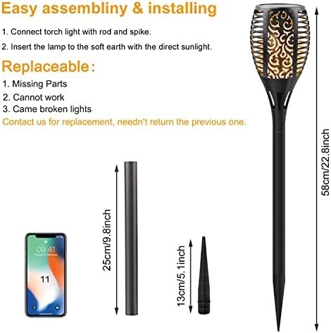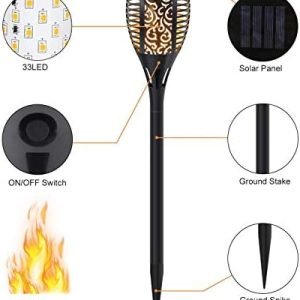 Broad Application & Easy Installation: Flickering flame solar torch is a prefect choice for Home, Patio, Garden, Yard, Pathway, Walkway, Driveway and also great for garden party, camping, barbecue, wedding, Christmas, Halloween festival decoration. No wiring required, get the torch connected with the stake and spike, simply install the torch solar lights anywhere you like and enjoy the real and safe “Flames”!