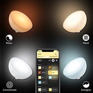 The Philips Hue Go White and Color Portable Smart Light Table Lamp provides limitless possibilities for extraordinary smart home experiences. Add a Philips Hue Go with white and colored hue light to your smart lighting system. The Hue Go has an elegant design with a transparent casing. It is wireless, portable and rechargeable, up to 3 hours. Control through the Hue system or via the on-product button.