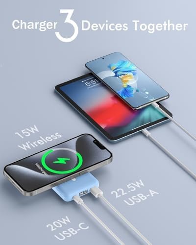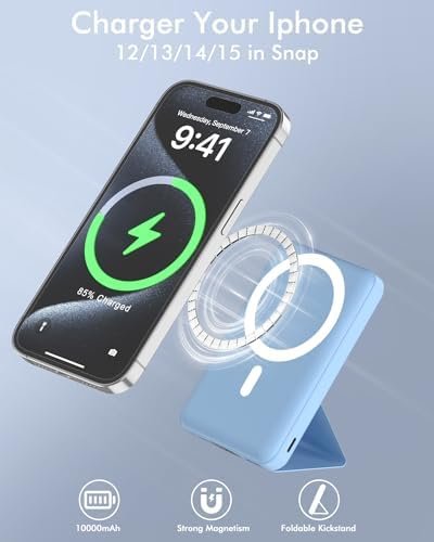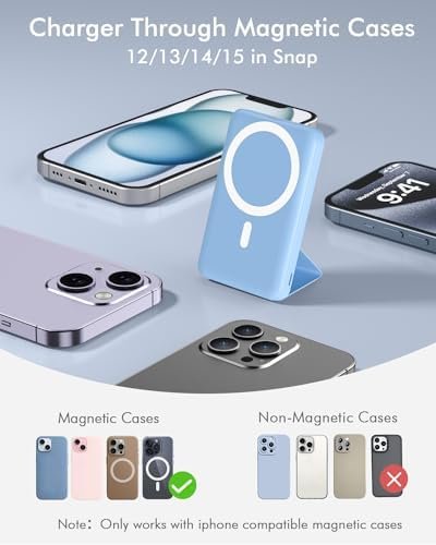 [ Great Compatibility ] This mag-safe battery pack is perfectly designed for iPhone 15, iPhone 15 Plus, iPhone 15 Pro, iPhone 15 Pro Max, iPhone 14, iPhone 14 Plus, iPhone 14 Pro, iPhone 14 Pro Max, iPhone 13, iPhone 13 mini, iPhone 13 Pro, iPhone 13 Pro Max, iPhone 12, iPhone 12 mini, iPhone 12 Pro, and iPhone 12 Pro Max. Does not block the camera lens. (Note: Need to be aligned with the magnetic suction, without cases or with magnetic cases)[ 10000mAh Large Capacity Magnetic Wireless Charger ] Mag-safe power bank equipped with 10000mAh Large capacity and high density battery design can provide all-day power. Large capacity of the magnetic power bank is great travel companion for you. The wireless charger iphone can charge 2 times for iPhone 15/14/13/12 Pro, about 1.5 times for iPhone 15/14/13/12 Pro Max & 14 Plus[ Multifunctional built-in foldable stand ] Mag-safe battery pack features a foldable stand to hold your iPhone (horizontally or vertically); let you no longer worry about the charging distance; The built in stand of the magnetic portable charger for iphone is sturdy enough to hold your phone. You can free your hands to watch videos or make video calls with friends[ Strong Magnetic & Smart LED Display ] Podoru portable charger iphone with the newest magnetic technology (stronger magnetic and nano adsorption), Super magnetic adsorption on the back of your iPhone. This mag-safe portable charger has a Built-in smart LED digital display allows you to clearly see the exact remaining power, no need to worry about low power[ 3 Devices Fast Wireless and Wired Charging ] Our wireless charger iphone support 5W, 7.5W, 10W and 15W Max wireless charging, 22.5W max USB-A PD output and max 20W USB-C output; support max 18W Lighting input and max 18w USB-C input. Portable charger iphone Support 3 devices charging at the same time, charging together, no waiting. And the portable charger power bank case is made of silicone to avoid damaging your phone[ Lightweight Design for Portability ] Our magnetic charger for iphone weighing only 0.41lb(104*68*21mm). Portable iphone charger mini design allows you to put the in your pocket or backpack easily, perfect for travel, vacation and camping, and It is allowed to be taken on the plane[ Superior Safety ] This power bank for iphone has 10000mAh high-density lithium polymer battery, and 8 built-in low-temperature ice cores. Automatically adjust the output to provide the most suitable current, protect your equipment from overcharge, overcurrent, overvoltage, short circuit and multiple safety protection systems. Can prevent overheating and high temperature effects, proactively avoid a series of potential dangers. Once you have this mag-safe portable charger, you can use it with confidence