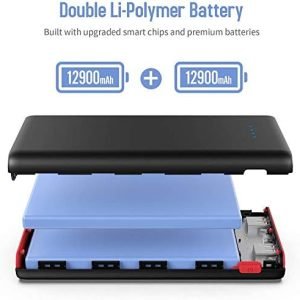 –25800mAh High Capacity charges any smart and cell phones for 6-8 times;