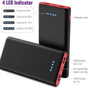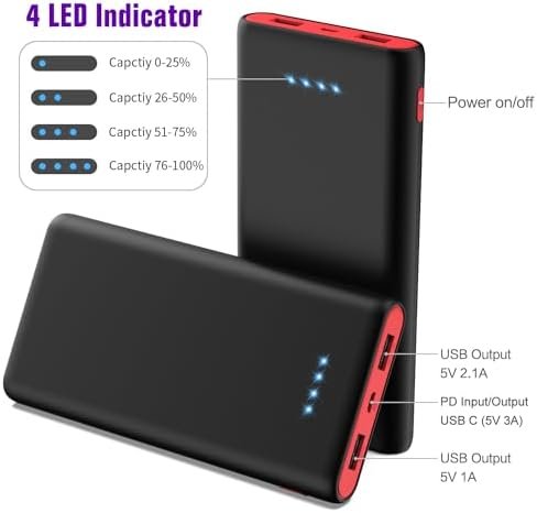 Dual USB Charging & PD Fast Recharge — The Dual USB ports (2.1A+1A) to charge your two devices simultaneously, Fully recharges itself in 8~12 hours with 2.1A input charger, or 12-24 hours with 1A charger;