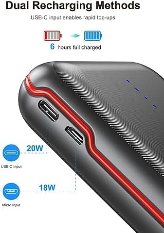 High Speed Charging: USB-A1 22.5W and PD 20W USB C output, full charge your iPhone XR in 40 min, can charge 4 devices simultaneously. With micro USB 18W, Type-C 20W dual input methods, only need 6H to refuel this power bank by 20W adapter.