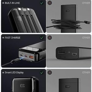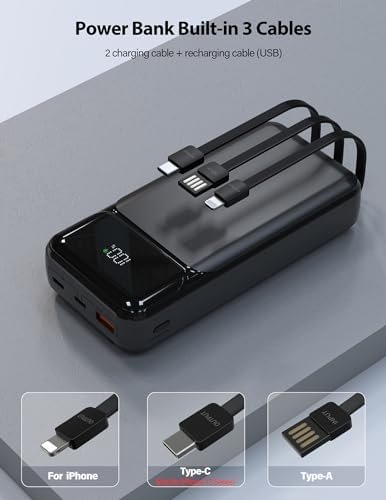 Fetures: Portable Charger with Built in cables, multiports for multi devices charging