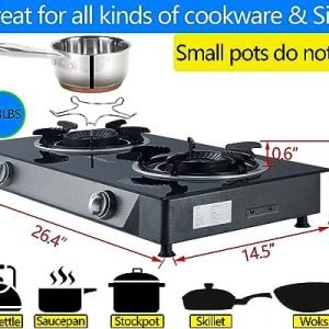 HIGH HEAT OUTPUT – Camping stove propane portable up to 26000 BTU / 2 burner.The outdoor propane burner adopts 360° oxygen intake. Full burn.Can quickly heat food and water.Make your cooking very efficient.Estufas electricas de cocina is the best choice for emergency.