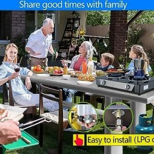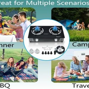 STYLISH & WELL MADE -The surface of the propane gas stove is made of high-grade tempered glass.The propane burner is designed with integral thickened steel.Strong and sturdy. The look and feel are very good.Propane cooktop is a beautiful scenery for outdoor activities.